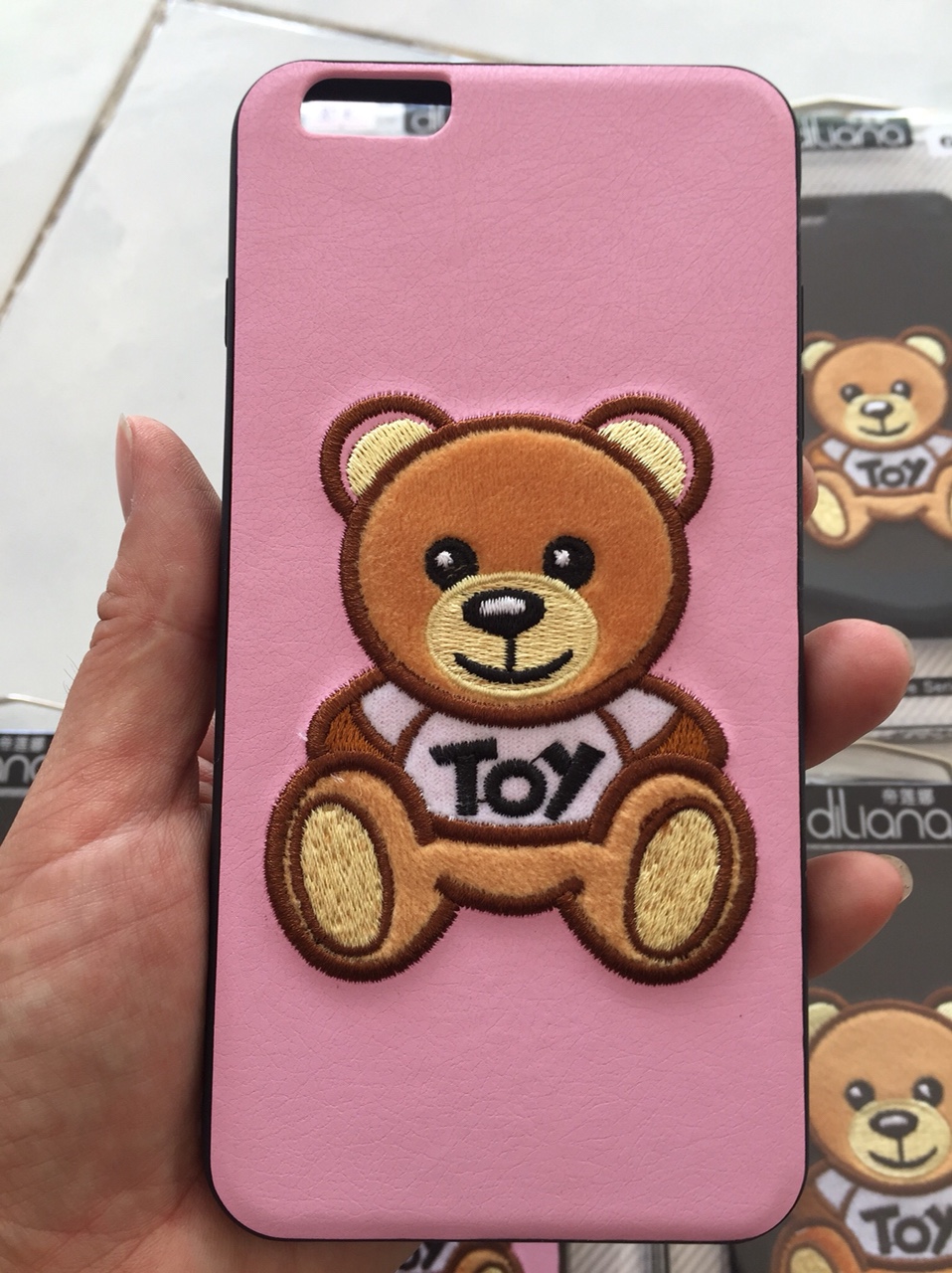 ốp lưng iphone bọc da, có thêu hình gấu