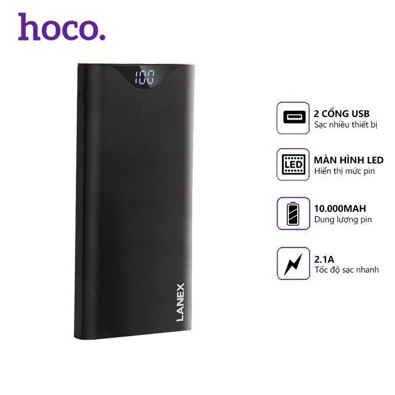 Pin dự phòng Lanex LPB-N12 2 cổng USB 2.1A, 10000mah, màn hình led